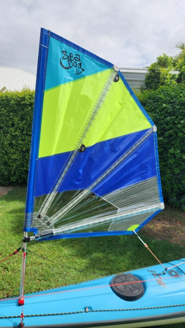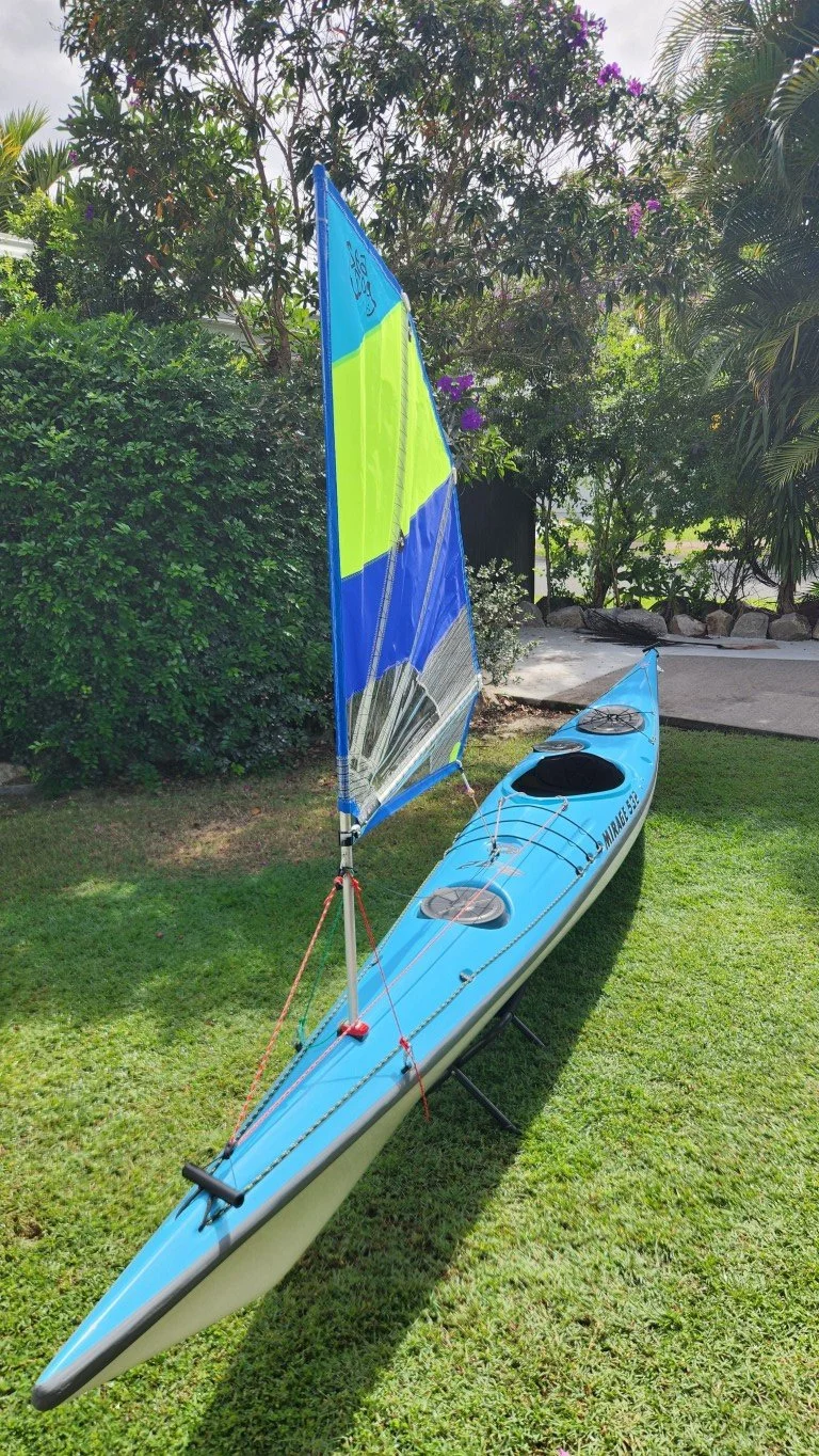 Factory fitted with Sea Dog 800mm sail, Silverstrom foam seat, Mirage Spray skirt (never used), Mirage travel cover. Has always been stored in a lock up garage, in the travel cover.
